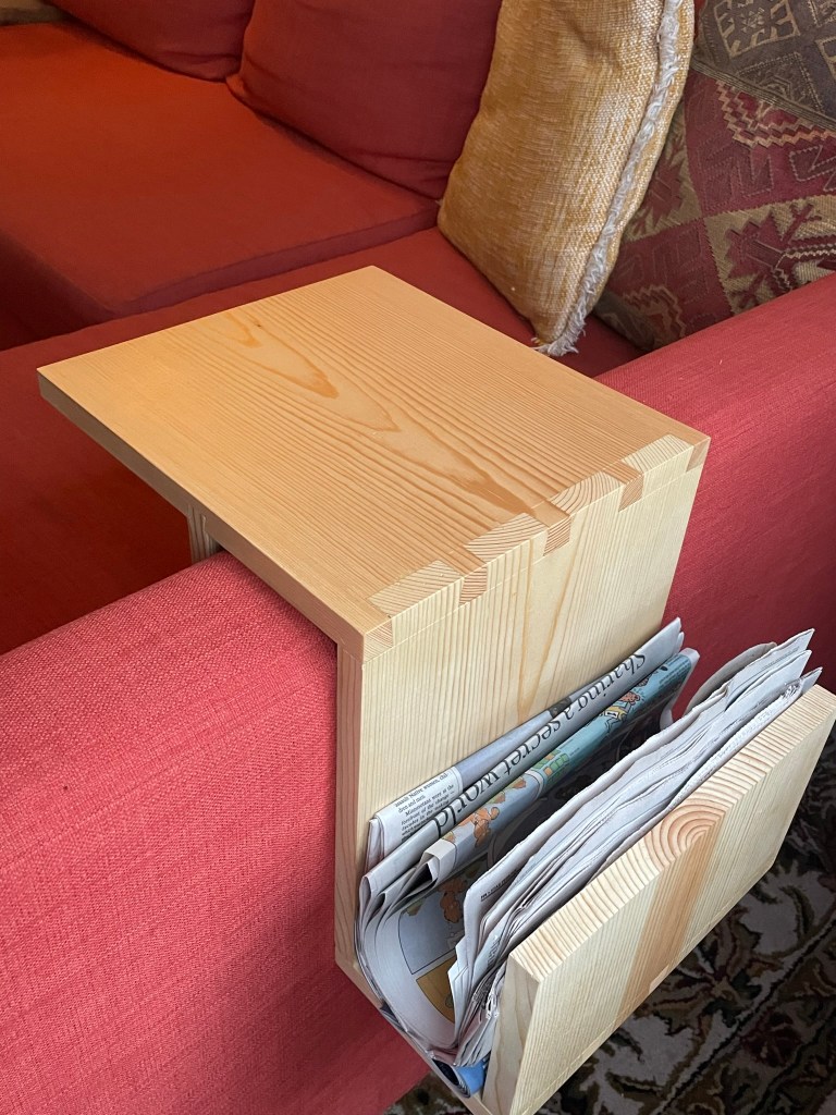 In our small living room, little space remains for setting drinks, books, or any other item requiring a semi-flat surface. What was needed? I had three goals in mind: