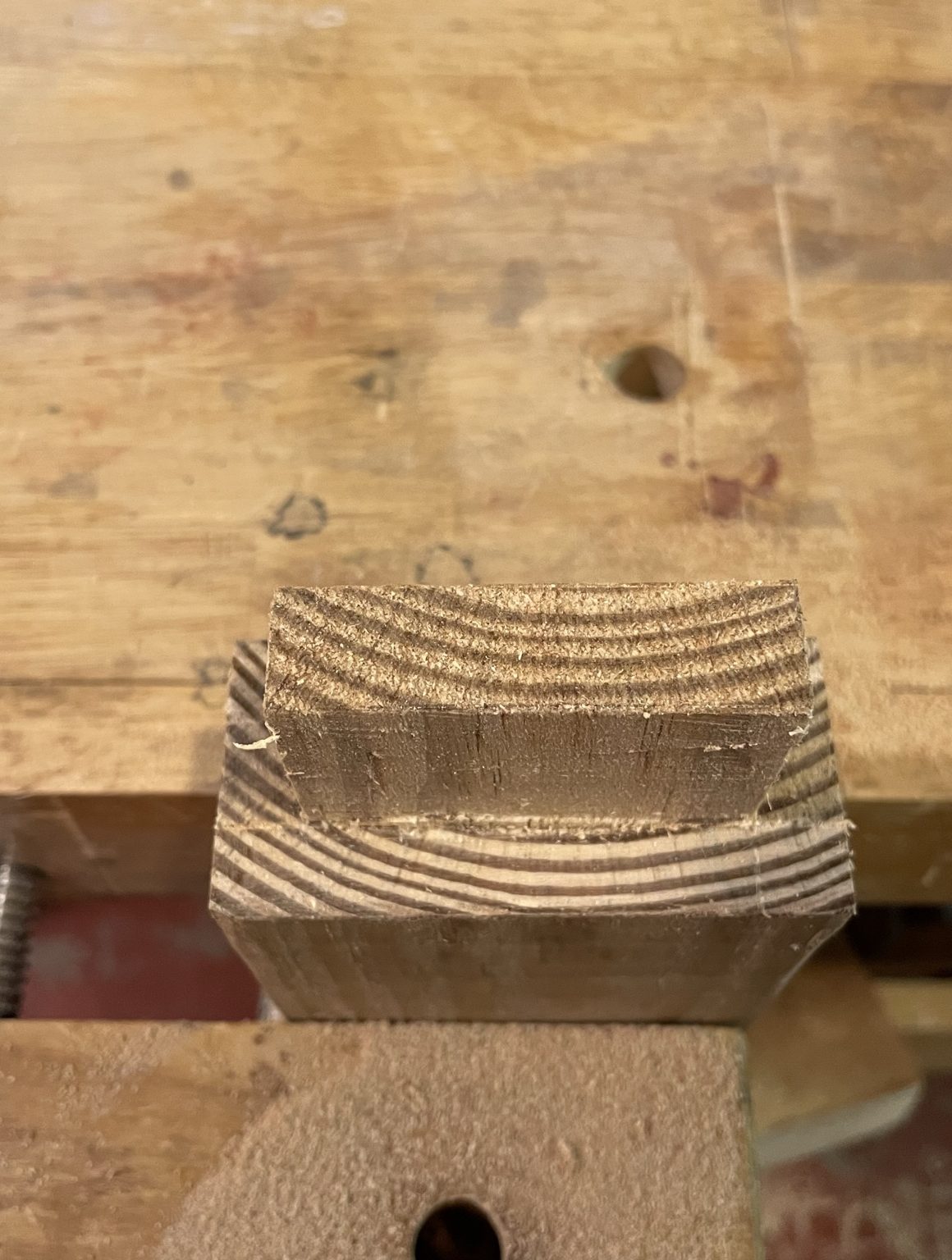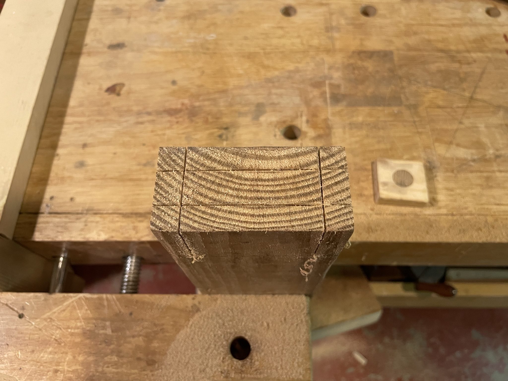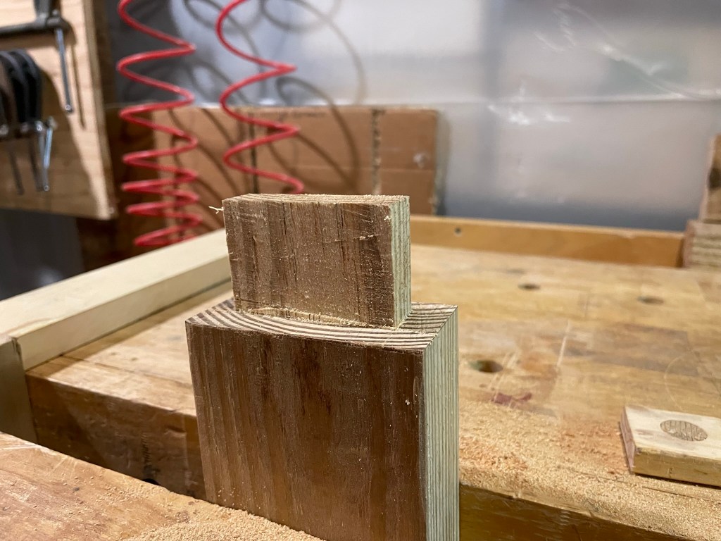 In lieu of typical screws and construction adhesive, I use these chairs as an exercise in mortise and tenon construction. As these will be primarily outdoor chairs, I expect they will experience all manner of bumps, racking, overturning, and weather. So, a few classic tenons can’t hurt.