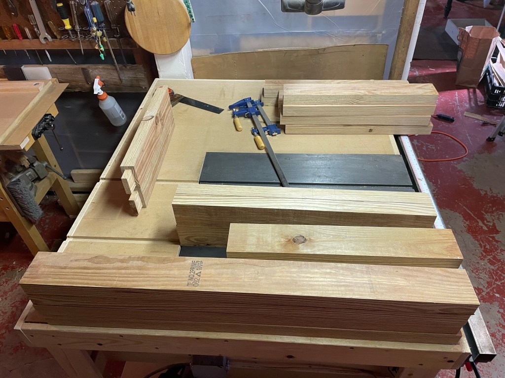 After a couple of weeks of waiting for the boards to dry, it was time to begin breaking down the stock. I cut each a little bit long , both to allow some trimming to square as needed and to provide some flexibility as I work out the design as I move through the building process.